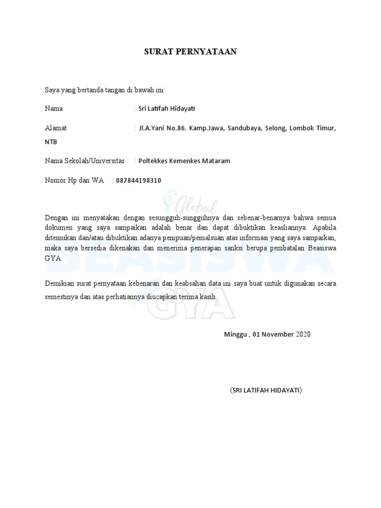Surat Pernyataan Keabsahan Dokumen Beasiswa Gya - Pendaftaran Beasiswa Gya Tahun 2020 Terbuka Untuk Pelajar Sma Sederajat Dan Mahasiswa Peluang Terkini - Check spelling or type a new query.